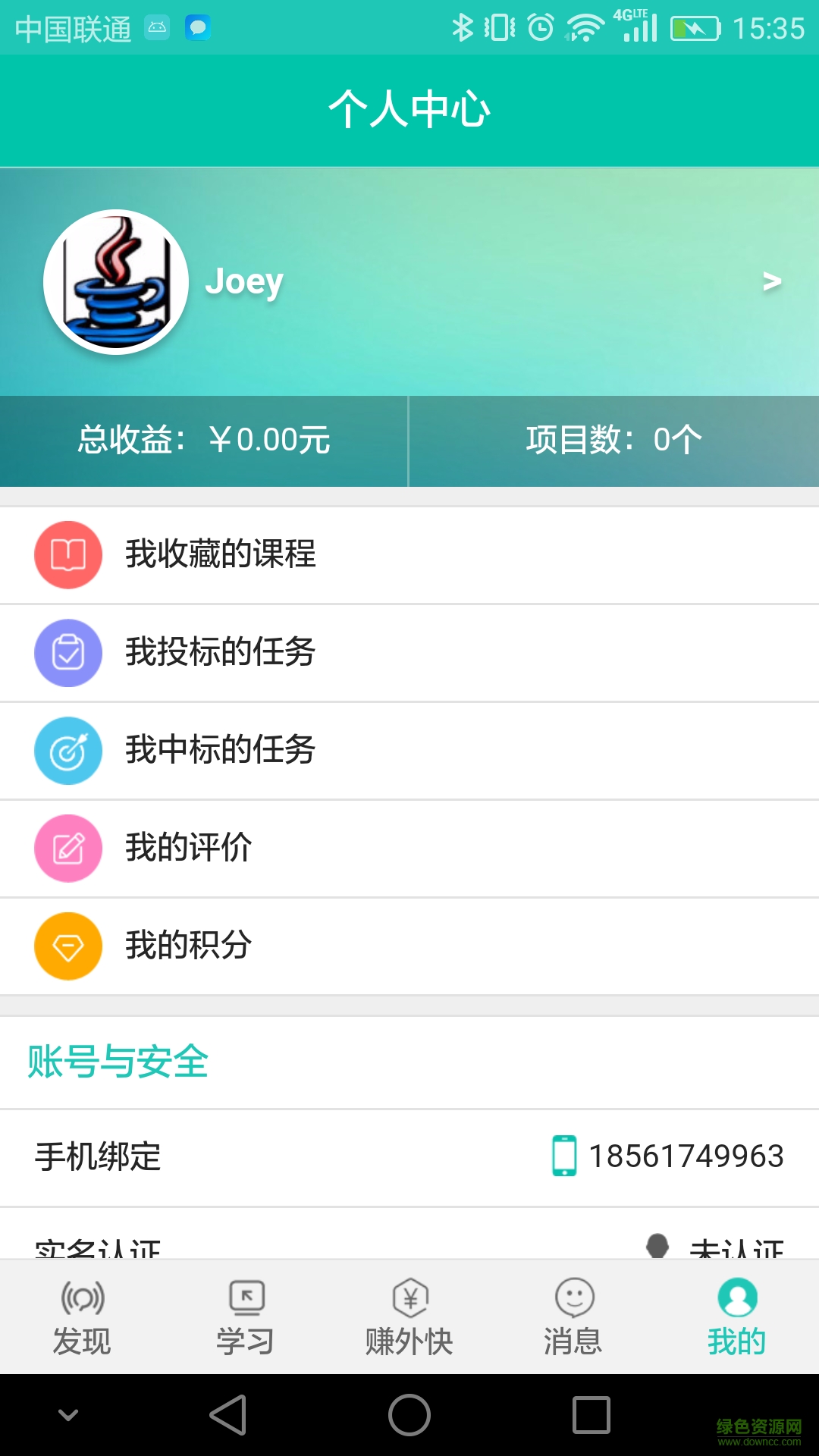 2.个人中心:能够绿色资源网查看自己的积分,投标任务
