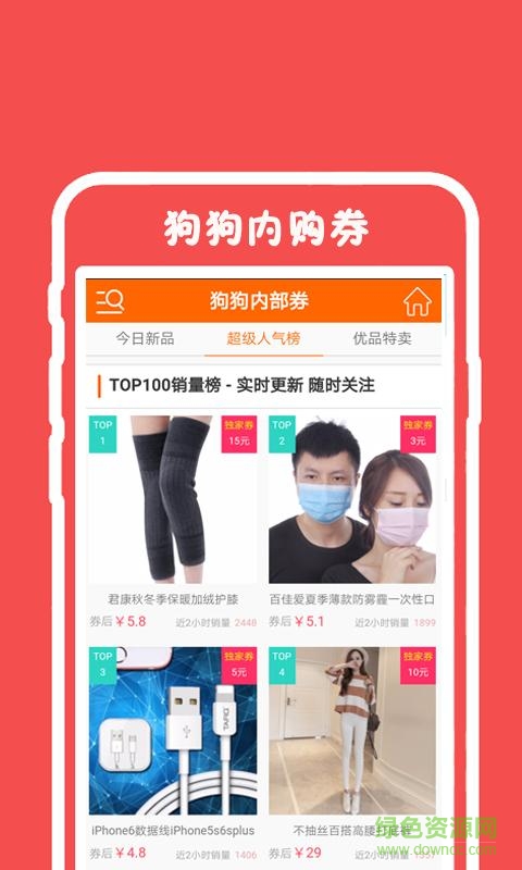 狗狗内购券app是一款给喜欢网购的用户提供的淘宝天猫优惠购物的手机软件,服装、美食、生活用品更各种物品应有尽有,如果你还在为一件物品货比三家而发愁,还在为自己没有淘宝天猫优惠劵而发愁,如果你还是一位严重“剁手患者“,赶紧前来绿色资源网站下载吧!