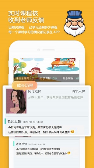 成长记录,学习成果:课程进程,学习进程,老师的反馈,所学过的课程和动态永久留存。
