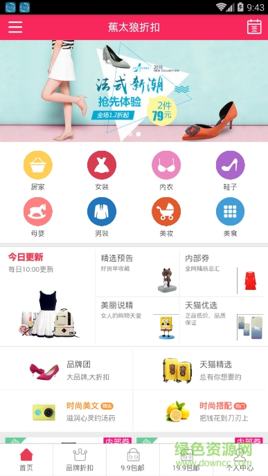 蕉太狼折扣app是一款专门给顾客提供折扣信息的软件,帮助客户进行一站式购物,替客户寻找优质折扣商品,节约客户的时间和金钱,欢迎大家来绿色资源网踊跃下载哦!
