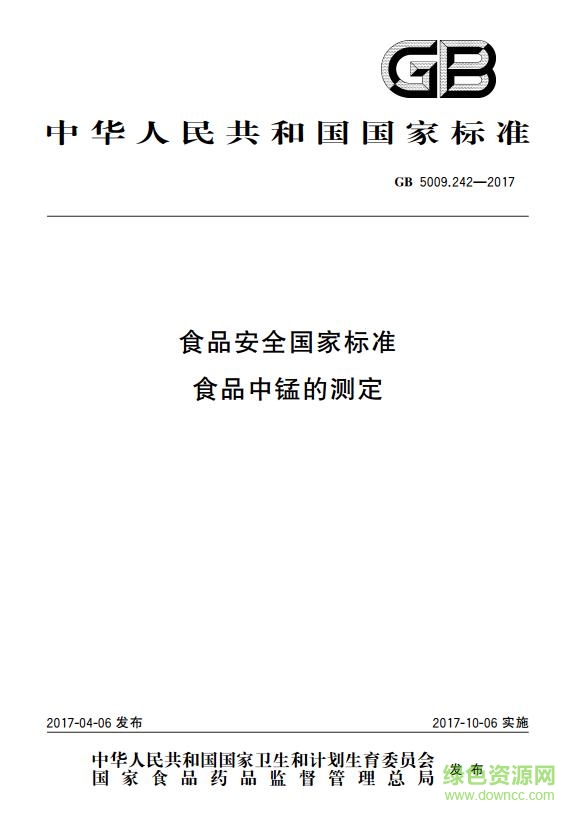 gb 5009.242 2017电子版这款标准为用户们提供了最新的检测食品中锰含量的方法,详细的讲解了众多的测定方法,提供最标准的测定范围,能够有效的测定出食品中的锰元素含量,从而定义一款食品的合格与否,快来绿色资源网下载吧!