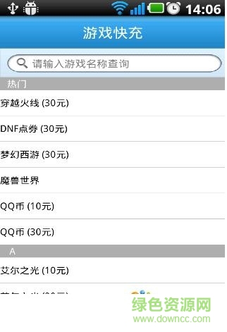 游戏快充汇集盛大、完美、腾讯、网易、光宇等多家游戏公司的200多款热门游戏,并且为同款游戏提供多种币值的点卡。使用游戏快充可同时为多款游戏账号充值,满足游戏玩家的多种需求。