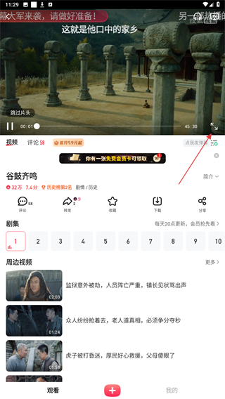 2、进入电视剧的页面内,点击下方要观看的内容。