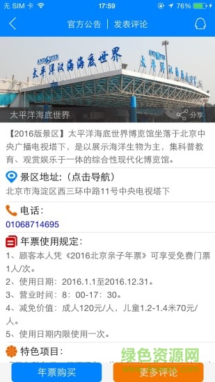 3、本年票包含项目的使用时间和次数各异,可查看下面详细图文介绍,使用前务必阅读使用手册;