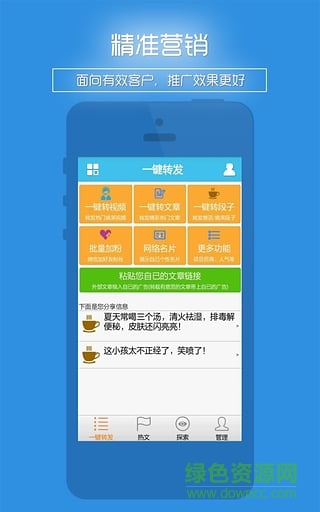 极速转发app是一款专为徽商朋友打造的手机转发营销应用,该应用包含n多广告模板,定位准确,需要的朋友赶紧来绿色资源网下载吧