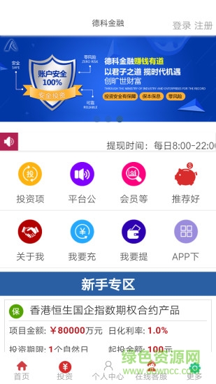 德科金融客户端是一款专业的,为用户提供多种投资、理财产品的手机理财应用软件。这款投资app为用户提供诸如黄金、石油等多种理财产品,同时每日为用户推送最新的金融行业资讯以及各类理财产品的收益动态,旨在让用户能够享受到最高端、全面的投资理财服务。