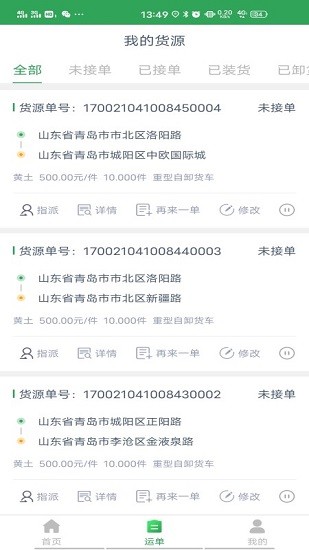 4、管理好个人的运单内容,完成运输以后就能在平台支付对应的费用;