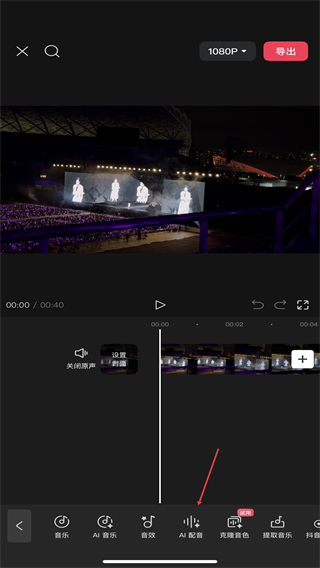 4、在音频菜单里,找到AI配音选项并点击,即可生成配音。