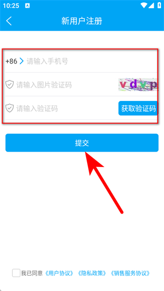 2、在新用户注册页面,输入手机号等信息后,点击提交。
