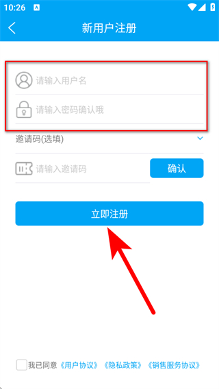 3、设置用户名和密码,点击立即注册,完成秒账APP账号的注册操作。