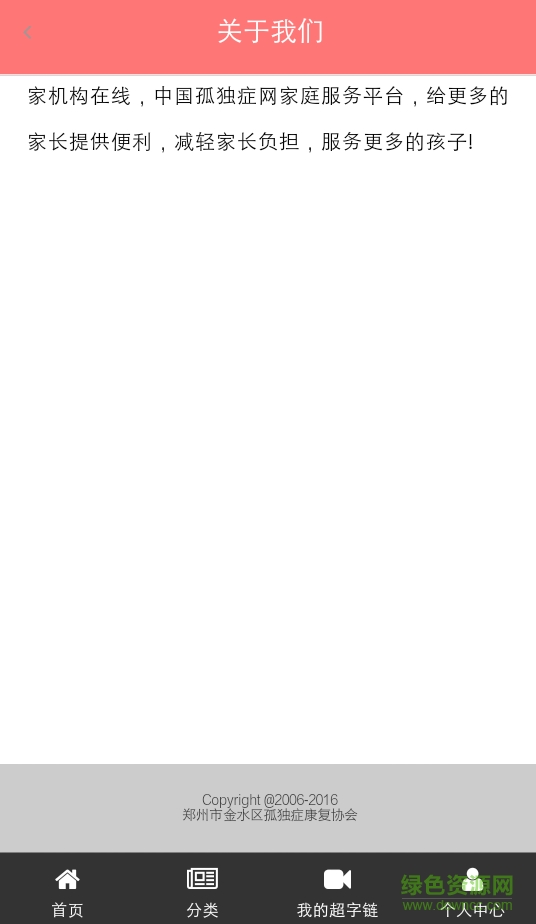 家机构手机客户端是一款生活服务应用软件,主要为中国自闭症儿童服务,提供给他们贴心的服务,海量健康视频,让孩子观看,让家长学会和孩子沟通,帮助他们早点融入到社会中,给更多的家长提供便利,减轻家长负担,服务更多的孩子。有需要的朋友不要犹豫哦,欢迎在绿色资源网下载。