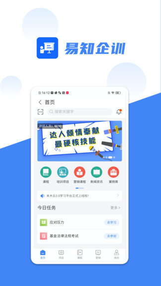 易知企训app是一款企业培训学习软件。为用户提供了一站式的业务培训服务。员工们可以在线参加业务技能培训,分享自己 的职业心得。通过视频直播形式帮助企业员工快速成长,不断提升职业技能,提高职场竞争力,欢迎下载使用。