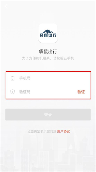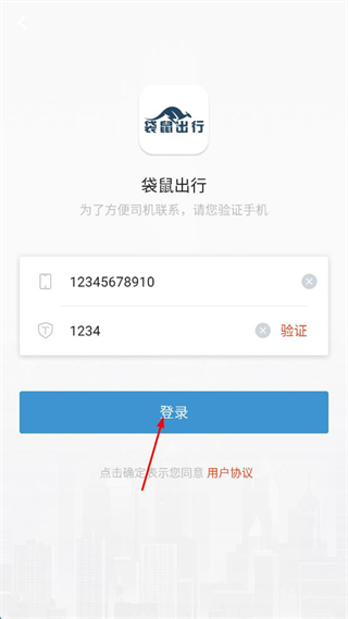 4、确认手机号和验证码填写正确后,点击登录按钮,完成袋鼠出行软件的登录操作。