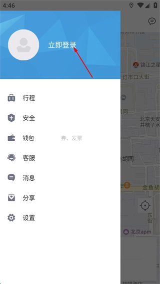 2、在侧边功能栏中找到立即登录选项并点击,进入袋鼠出行的手机验证登录页面。