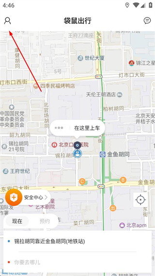 1、打开袋鼠出行软件,进入主页面后,找到左上角的个人图标并点击,调出侧边功能栏。