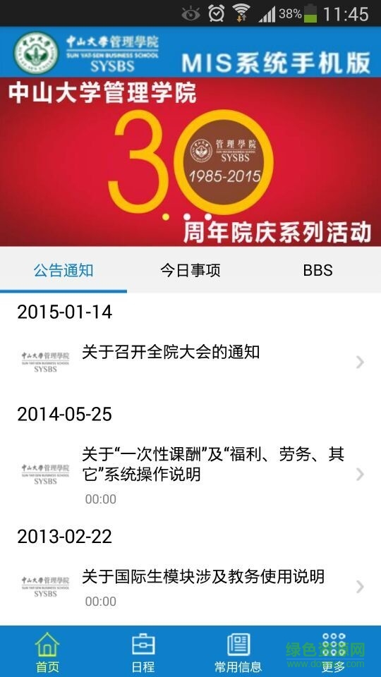 -公告、日程、班车时刻表、常用电话、通讯录、学科学术点模块功能