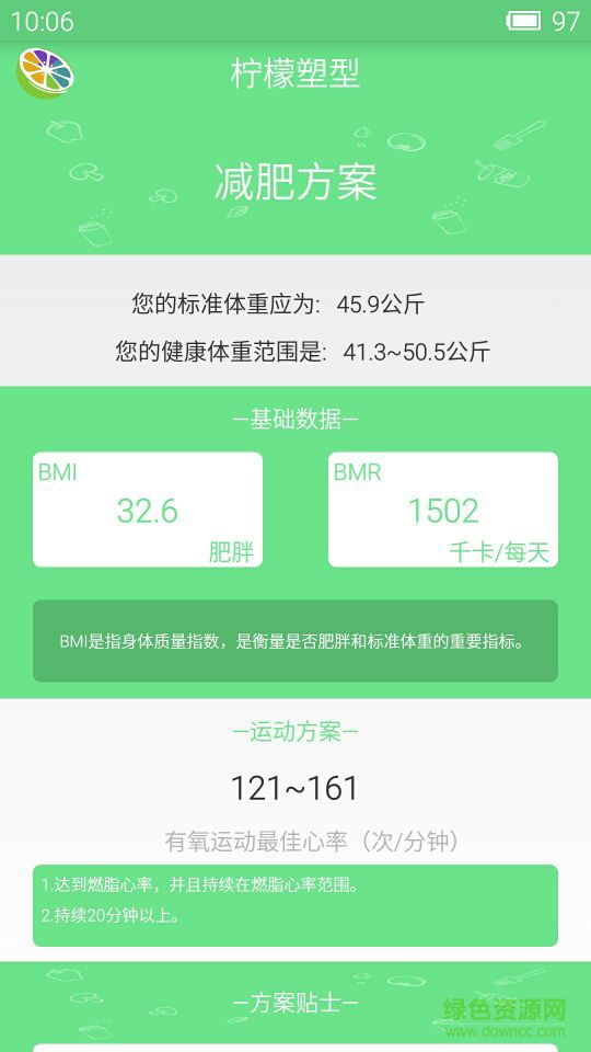 2、全新的减重方案、食谱定制方案,自动计算您每天所消耗的热量,和每天需要补充的热量;