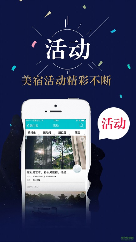 蜗牛客app是一款服务旅行的旅游app。提供民宿,特色餐饮,农产品等服务,帮助用户制定旅行计划。欢迎大家来绿色资源网踊跃下载哦!