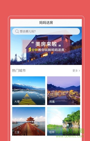 妈妈送房app是旅游住宿平台,该软件集合了上千家有当地的民俗住宅和有特色的酒店。出行再也不用为住宿烦恼啦,直接上妈妈送房一键查询订购,在外面也不孤单,犹如妈妈般的给你温暖。