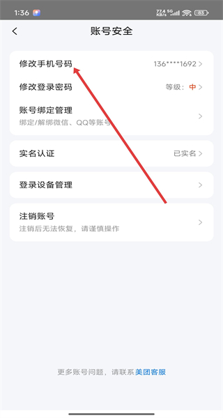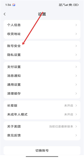 1、在美团的“设置”界面中,可以点击“账号安全”选项,进入账号安全管理页面查看相关设置。