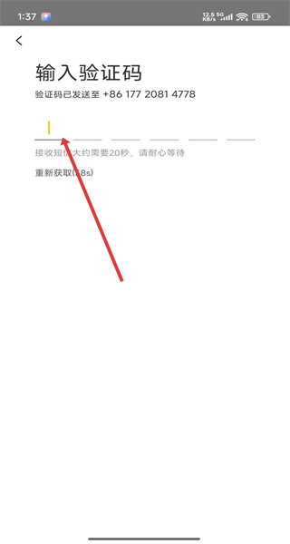 4、在收到验证码后,在“输入验证码”界面填写对应的验证码,完成新手机号的绑定操作。