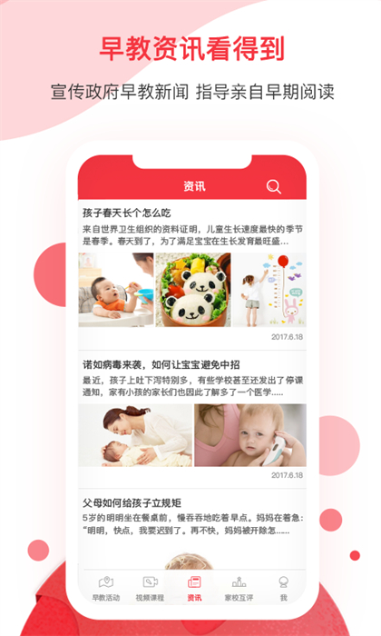 为0-3岁幼儿专门打造的早教APP,家长可通过APP进行在线报名活动,观看视频完成家校互评等内容。平台还提供早教咨询供家长查阅,真正做到足不出户了解孩子的早教情况并学习当下的育儿方针。
