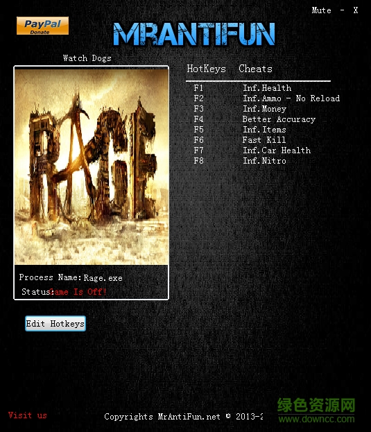 狂怒修改器是针对该游戏玩家提供的一款免费辅助工具,通过该辅助玩家可以自由修改游戏中的无限生命、没有载重、没有伤害等九项属性,合理的修改属性可以帮助玩家更轻松的体验游戏,喜欢的朋友欢迎来绿色资源网下载!
