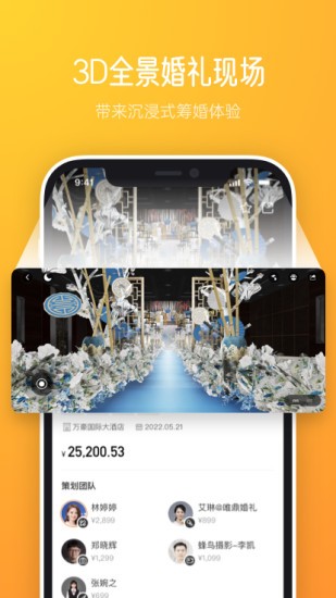 通过全新的3D全景构建婚礼现场,给您带来沉浸式筹婚体验。
