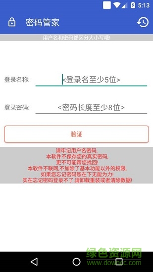 密码管家超级密码管家,能够随时管理自己的密码,而且还能够随时的根据不同软件来保存密码,而且软件还是蛮干净的,没有那些乱七八糟的广告,是非常不错的手机游戏,是非常不错的手机软件,喜欢就来绿色资源网下载吧!