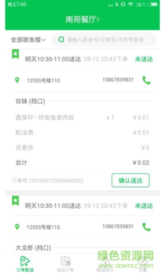 1.配送员接单同校配送