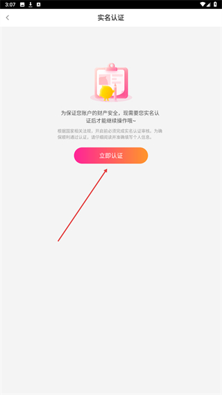 2、进入实名认证的页面内,点击页面中的立即认证按钮。