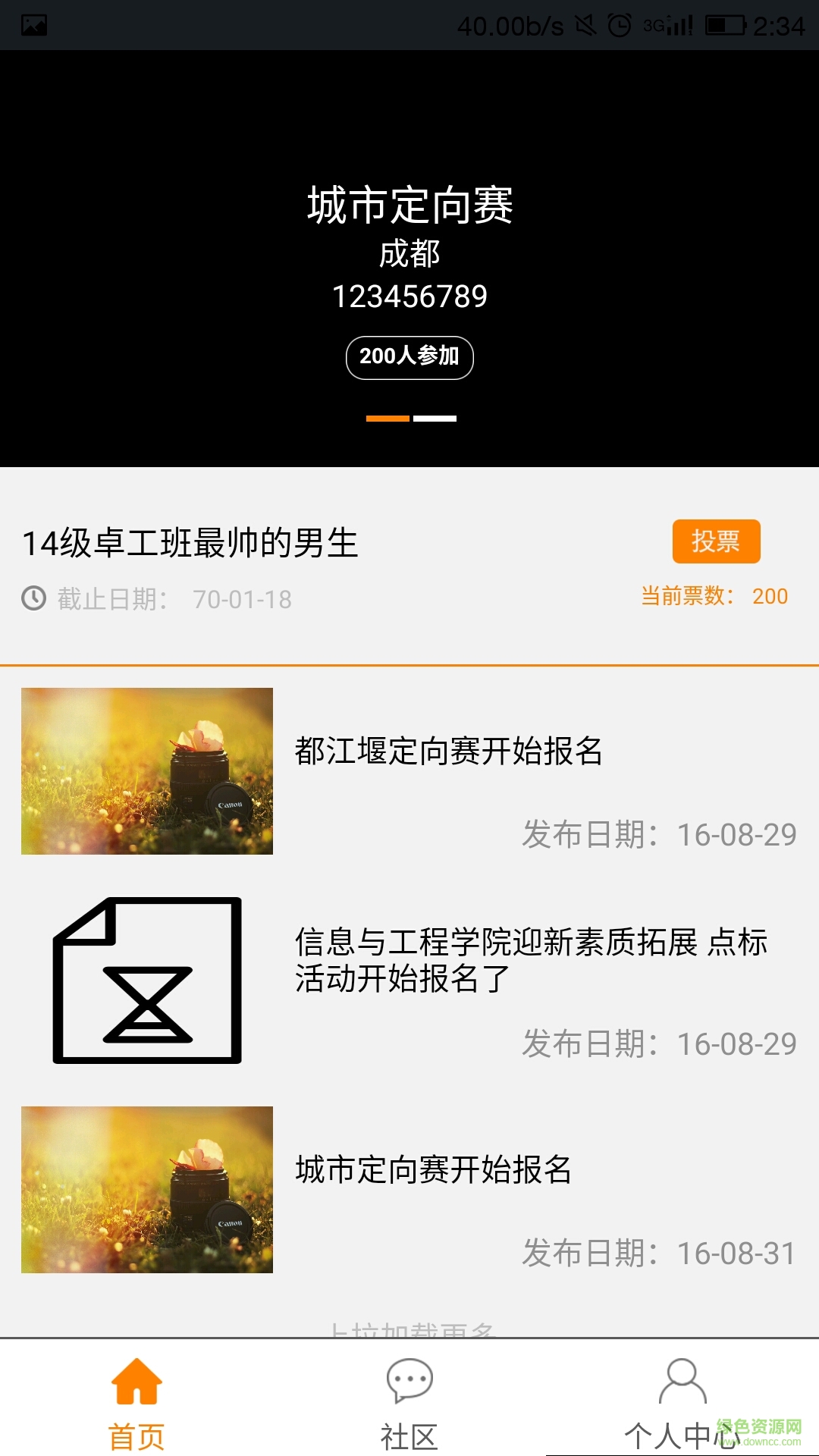 2.悦定app为城市定向运动提供赛事活动前期的资讯推送、赛事推广、赛事报名与缴费等服务;