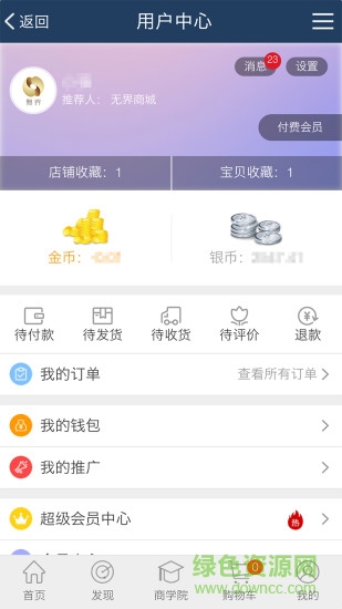 用户注册进入无界商城,立即送300银币和开启消费全返。