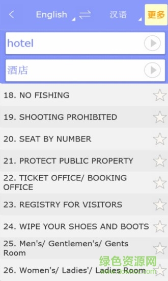 旅游口译宝是一个很棒的短语手册,它能将6种不同的语言到另外6种不同的语言。例如:英译中, 英语译成法语,英语译成汉语…等等。