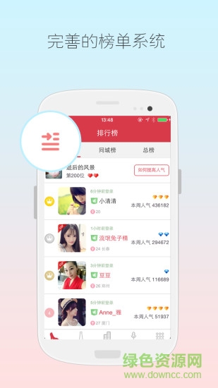 人气排行榜:能第一时间了解到谁是兜兜中的男神、女神。社交软件怎么能少了排名?