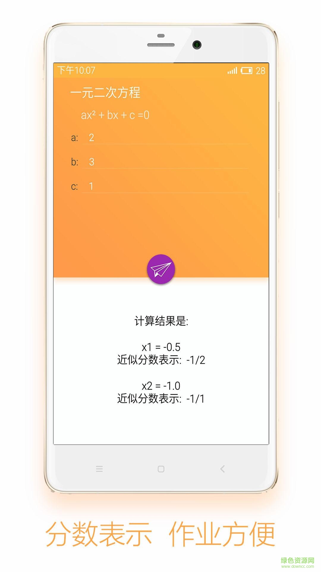 方程计算app是一款专门求解方程的软件, 特别适合学生们使用。到目前为止一共支持5种方程的求解,同时自带分数显示(近似转换), 对于作业中经常出现的标准分数例如3/5可以很好地支持,无需像其他软件那样手动化为分数。同时软件界面也经过精心的设计, 使用了轻快简洁的多彩界面,让你在作业之余也有个五彩的好心情。