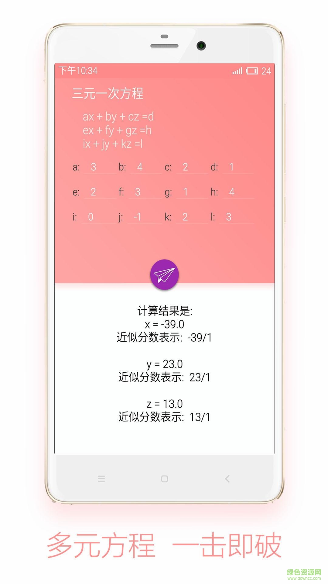 5.支持三元一次方程组解答。