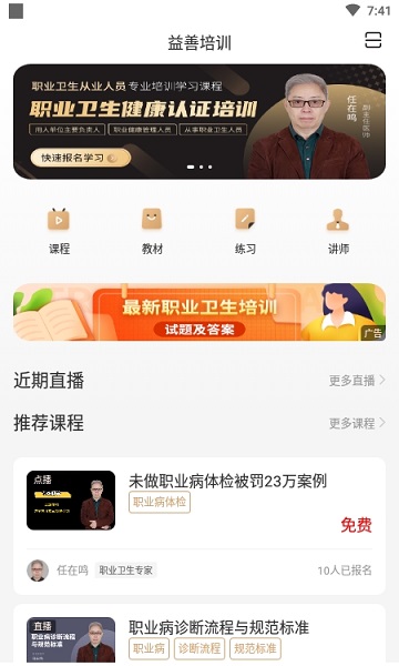 益善培训app,益善培训线上教育培训平台,主要培训内容包括职业安全生产知识,职业病诊断以及规避方法等内容,确保您的工作生产安全,享受更加健康快乐的工作体验。