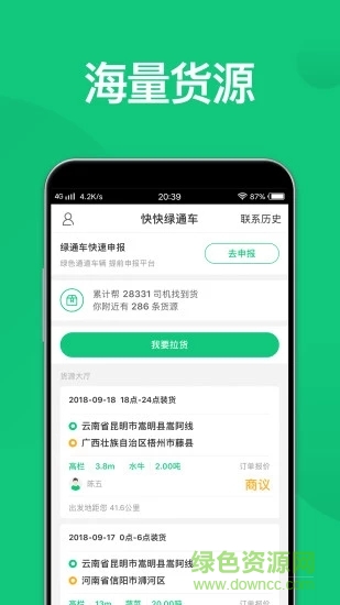 2.只需运输鲜活农产品的货车司机,通过手机下载“快快绿通车”APP,