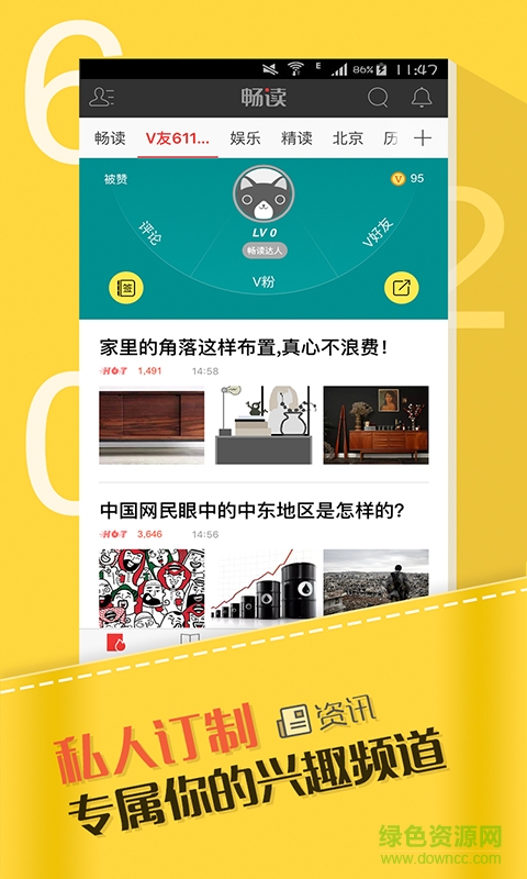 通过畅读可以订阅新闻、娱乐、时尚、财经、汽车、美女、搞笑、科技、体育、军事等多种多样的兴趣,并根据用户的阅读行为推荐最新最热的内容,精彩文章看不完。