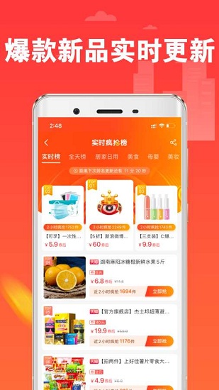 淘优惠券助手app每天更新,折扣优惠潮品新品随时上架,几次补货。