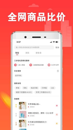 只需要输入需要购买的商品,淘优惠券助手app就能立即展示其商品的所有隐藏优惠券信息。