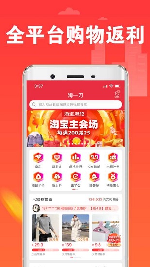 淘一刀app是一款优惠购物软件,淘一刀软件实时推荐优惠折扣省钱商品,淘一刀app是一款让你网购省钱省心的随时查询优惠券的购物帮手。通过淘一刀软件打开省钱新思路,购物省钱又省心。