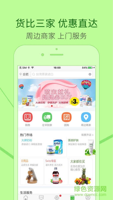 闲置市场:新旧宝贝邻里跳蚤,友邻互助随时交易,技能交换,邻里间免费提供帮助。
