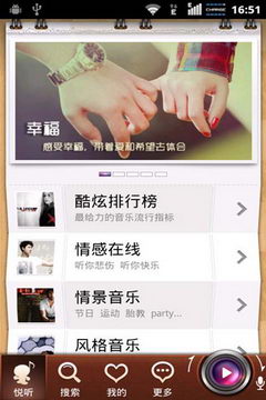 依托爱音乐海量正版音乐的云服务平台,支持移动互联网接入