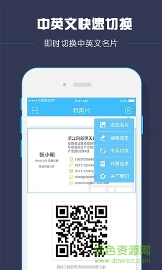 还在担心身边没有名片而错过吗?不用担心,“口袋名片”来帮你忙,出门在外,你还在为名片遗忘在家而懊悔吗?你还在为名片发完了没有复印而焦急吗?一张名片就是一次机会。“口袋名片”是一款通过输入个人信息来生成电子名片的应用。它可以根据你输入的信息即时生成一张电子名片和一张有着你信息的二维码名片。其他人可以通过扫描你的二维码获取你的名片信息并保存。