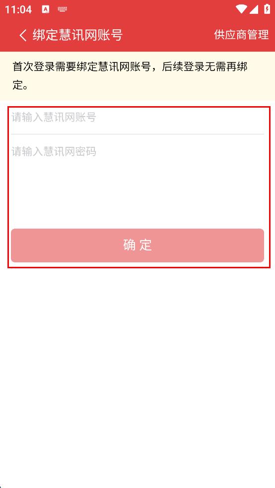 4、在“请输入慧讯网密码”输入框中输入密码,点击“确定”按钮,即可完成登录及账号绑定操作。