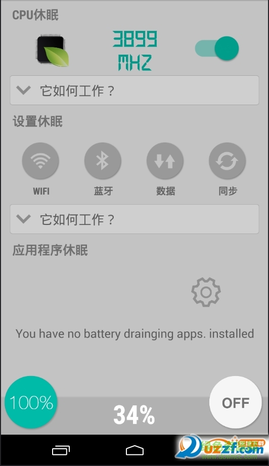 选择哪些电池排水的应用程序将被禁用(休眠)当屏幕处于关闭状态。一些已安装的应用程序都在不断进行,对一些电池排水任务的背景。例如:社交应用程序更新您的状态,并检查新邮件。如果休眠这个应用程序,它将停止在后台(服务)运行的所有任务,这将导致极端节省电池。该冬眠比任务的杀手或任何其他内存清洁更有效。