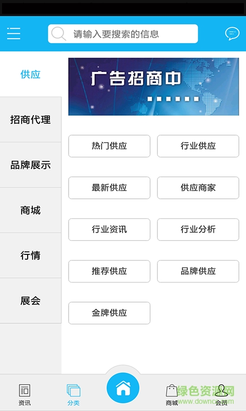 分类页面:供应、招商代理、品牌展示、商城、行情、展会
