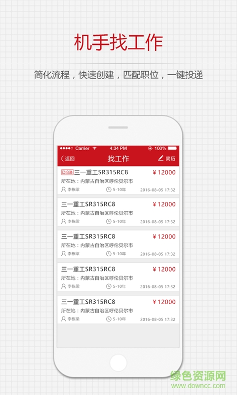 1.机手找工作,快速创建,匹配职位,一键投递